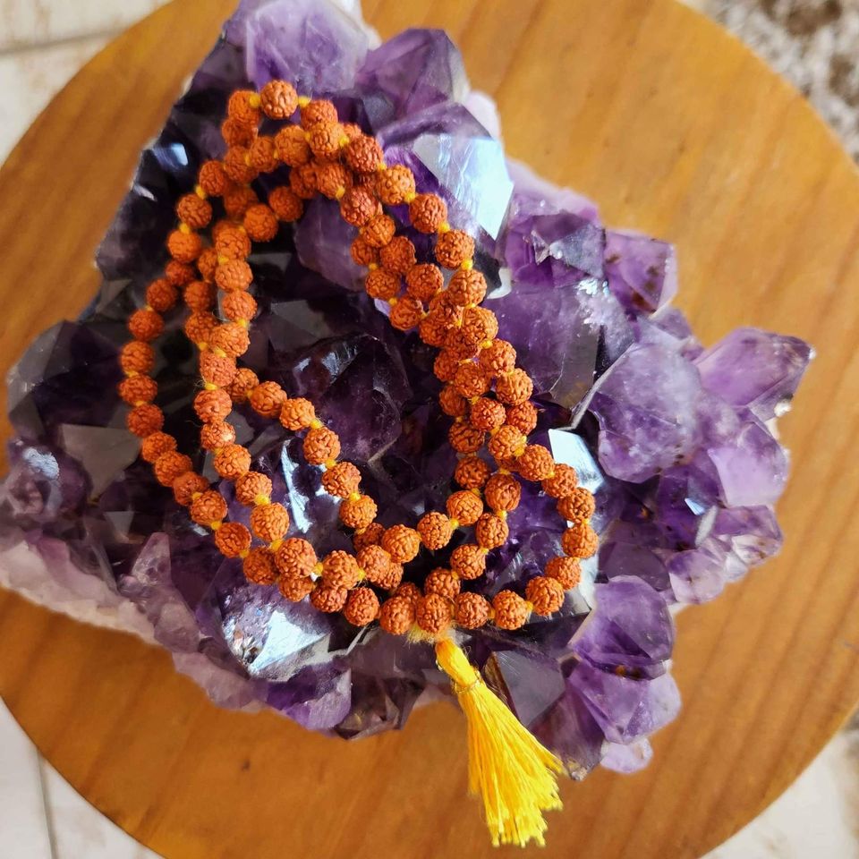 Material: Contas de Rudraksha autênticas, conhecidas por suas propriedades energéticas.